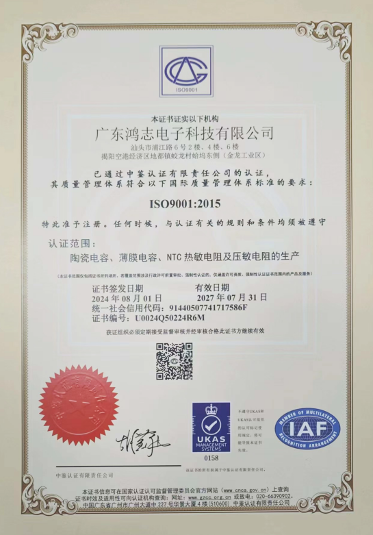 廣東鴻志質量體系證書