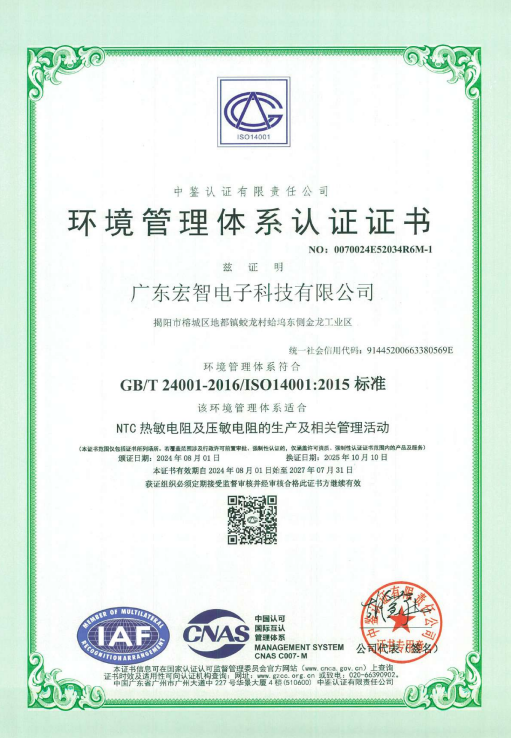 廣東宏智環(huán)境體系證書