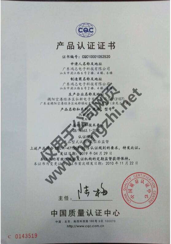 NTC熱敏CQC認證