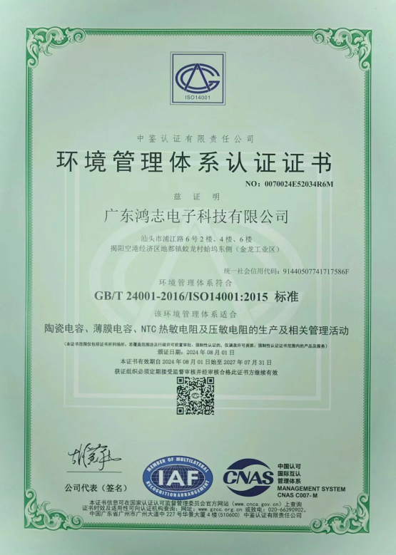 廣東鴻志環(huán)境體系證書