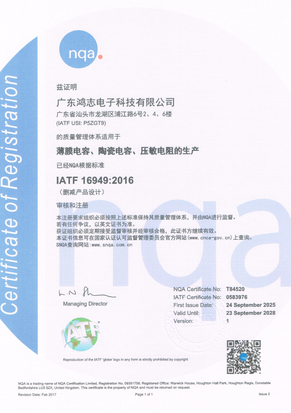 IATF16949汽車產品質量體系證書